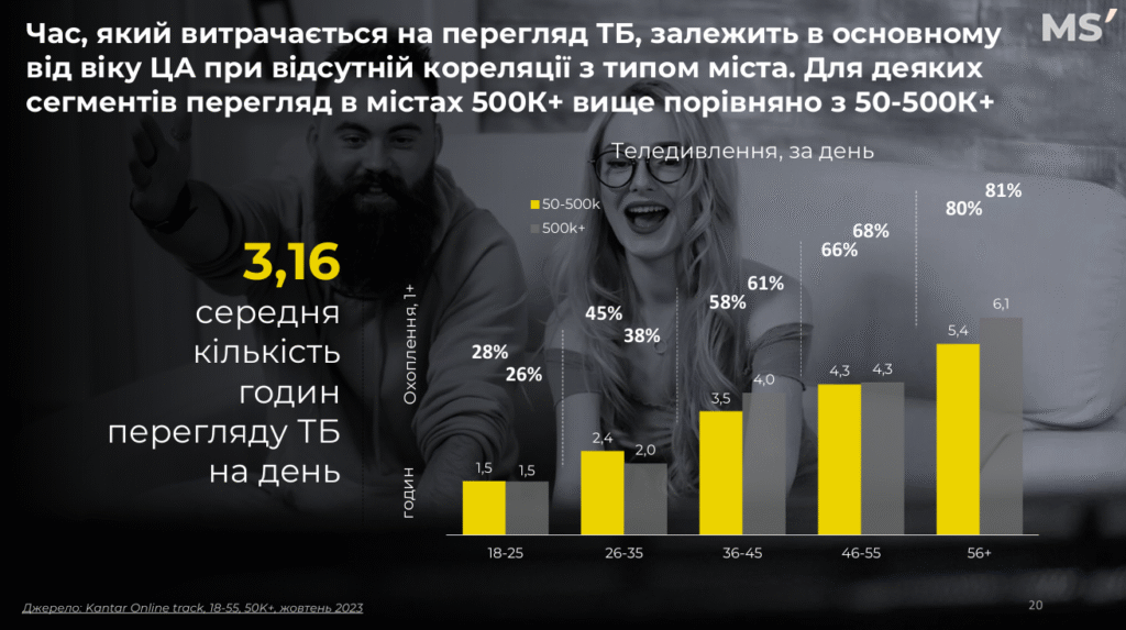 • Перегляд вищий у старших груп, але онлайн-ТБ активно росте.