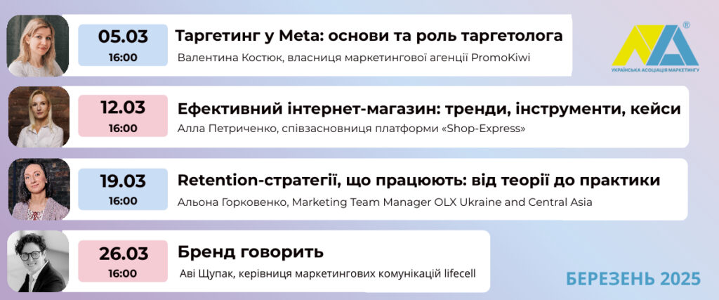 📅 Щосереди о 16:00 з березня по травень 2025 року ми будемо зустрічатися з маркетологами-практиками, експертами.