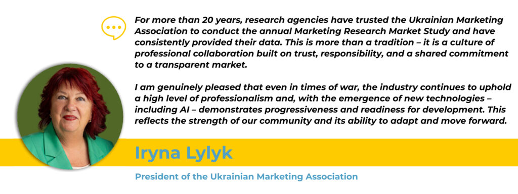 The previous Marketing Research Market Review for 2024 is available on the UMA website and in issue No. 4 of the Marketing in Ukraine journal (2025).